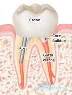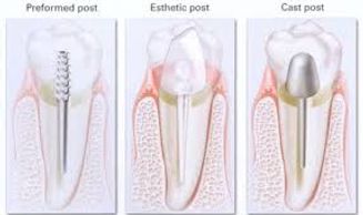 A metal or fiber glass post is inserted in the prepared Root Canal to gain strength from the tooth Root. It is then cemented and the filling is done. The tooth is later prepared for the crown/cap.