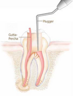 The Root Canals after cleaning are restored or filled with a plastic like material called Gutta Percha in the form of cones or preferably in a warm type which flows into all the spaces of the canal which are unreachable otherwise. The RCT technique used in Align Orthodontics is the newest Crown-Down tech. followed by a root filling with resin based sealer(AH plus) and heated gutta percha (Themafil). It is an inert and non-toxic material.