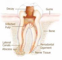 To understand the concept of Root canal Treatment, the normal anatomy of the tooth would have to be understood. The tooth that we see in our mouth is held in the jawbone by its roots. Though the tooth is one hard structure that can break nuts and crush bones, the heart of the tooth is a soft structure encased in hallow.
