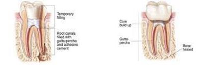 Next sitting follows the reconstruction of the tooth to its natural anatomy, before it is shaped or reduced for crown preparation. This marks the completion of root canal treatment.
